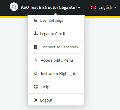 In Leganto, click the dropdown under your name and click Leganto Cite It!